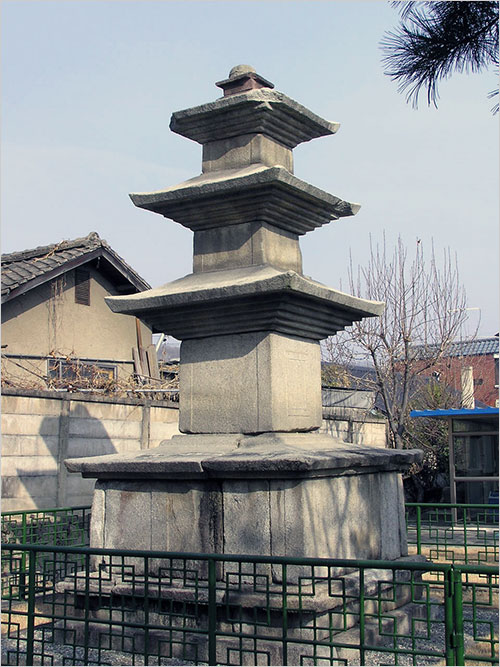 주택가 한복판에 서 있는 이 돌탑은 6m에 가까운 높이에도 주변의 나지막한 지붕들과 의좋게 어깨를 맞대고 있으며, 햇살이 쏟아져 내리는 한낮에는 주택가의 정적 속에서 주변의 민가와 고개를 맞대고 낮잠에 빠진 것처럼 보이기도 한다. 둔중한 돌로 된 몸집을 하고도 기와와 슬래브집 일색의 주택가에서 생뚱맞아 보이지 않는 것은 화강암의 차분한 돌빛 때문인 듯하다.