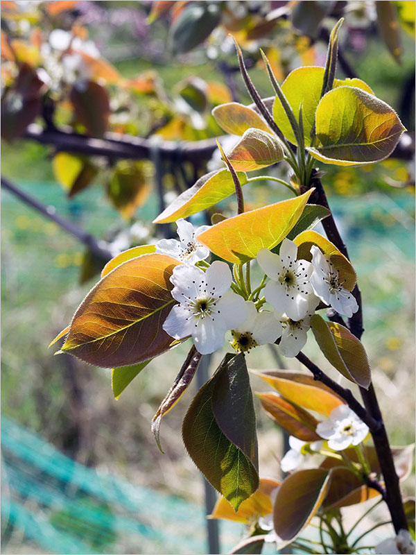 복숭아밭에는 한두 그루씩이긴 하지만 배와 밤나무, 사과와 모과나무도 있다. 어린 밤나무는 이제 겨우 끝눈을 틔우고 있었고 나머지는 제각기 꽃을 피우고 섰다. 배꽃은 4년 전에만 해도 소박하지만, 기품 있다고 느꼈는데 웬걸, 올 기분은 좀 달랐다.