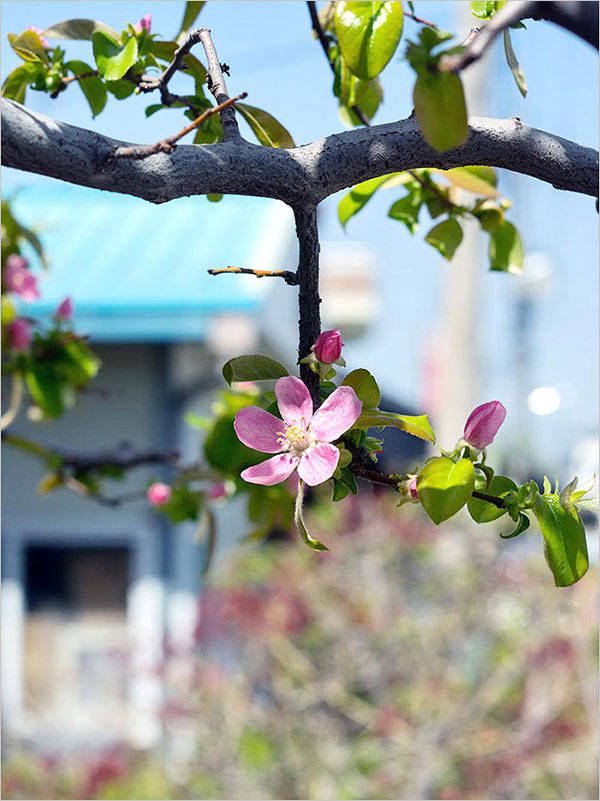 거의 무색에 가까운 흰빛은 좋았는데, 까만 머리를 단 꽃술이 어쩐지 마음에 거슬렸다. 시간이 지나면 꽃을 바라보는 마음도 변하는가. 창고 가까이 심어놓은 모과나무 꽃은 반전이었다. ‘과일전 망신’의 주역인 이 과일나무가 피운 꽃은 그 열매와는 달리 고운 기품을 보여주었다.