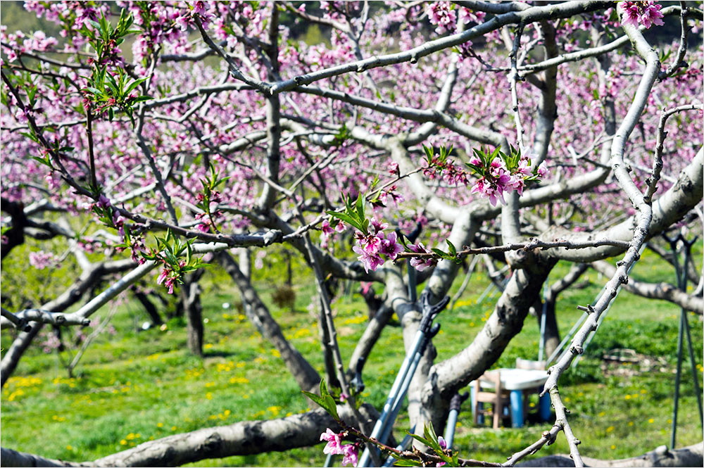 해마다 복사꽃 철이면 잠깐이라도 벗을 찾았건만 그걸 기록한 것은 지난 2014년이 처음이었다. 도연명의 ‘무릉도원(武陵桃源)’은 그의 <도화원기(桃花源記)>에 나오는 이상향으로 ‘도원(桃園)’이 아니라 ‘도원(桃源)’이다. 4년 전에 벗의 과원을 찾았다가 쓴 글이 ‘벗의 도화원(桃花源), 그 연분홍 안개’ 가 된 까닭이다.