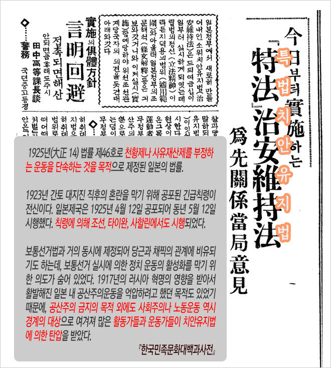 · <경향신문>, [어제의 오늘]1925년 일제 치안유지법 공포