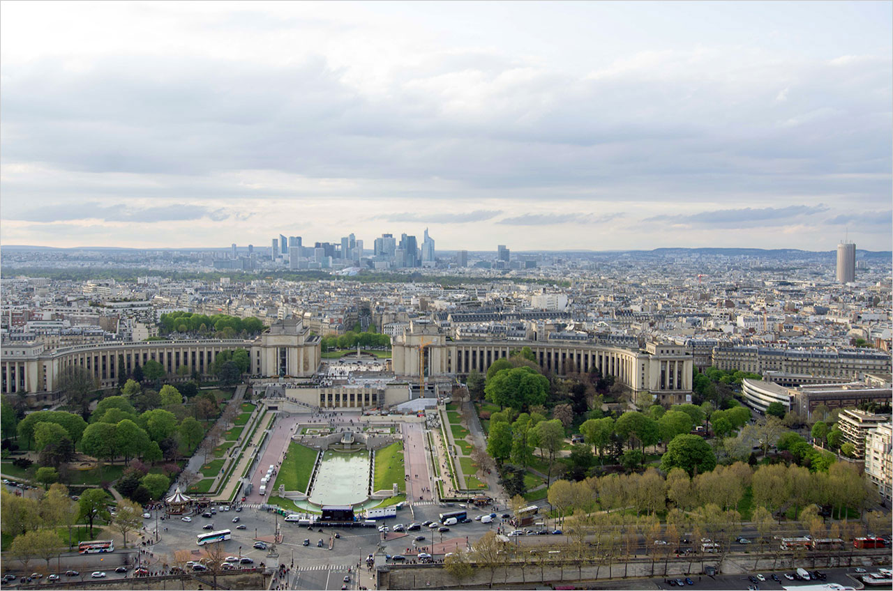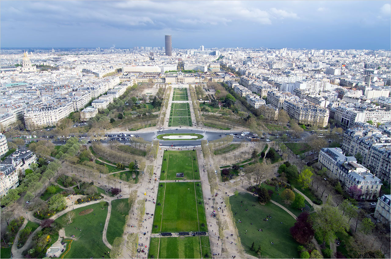 전망대의 남동쪽에 초록빛 마르스(Mars) 광장과 그 너머 파리 시내에선 보기 어려운 고층빌딩, 몽파르나스(Montparnasse) 타워가 아득하게 보였다. 몽파르나스 타워는 파리에서 가장 높은 59층 전망대가 있는, 에펠탑을 가장 잘 볼 수 있는 곳이라 한다.