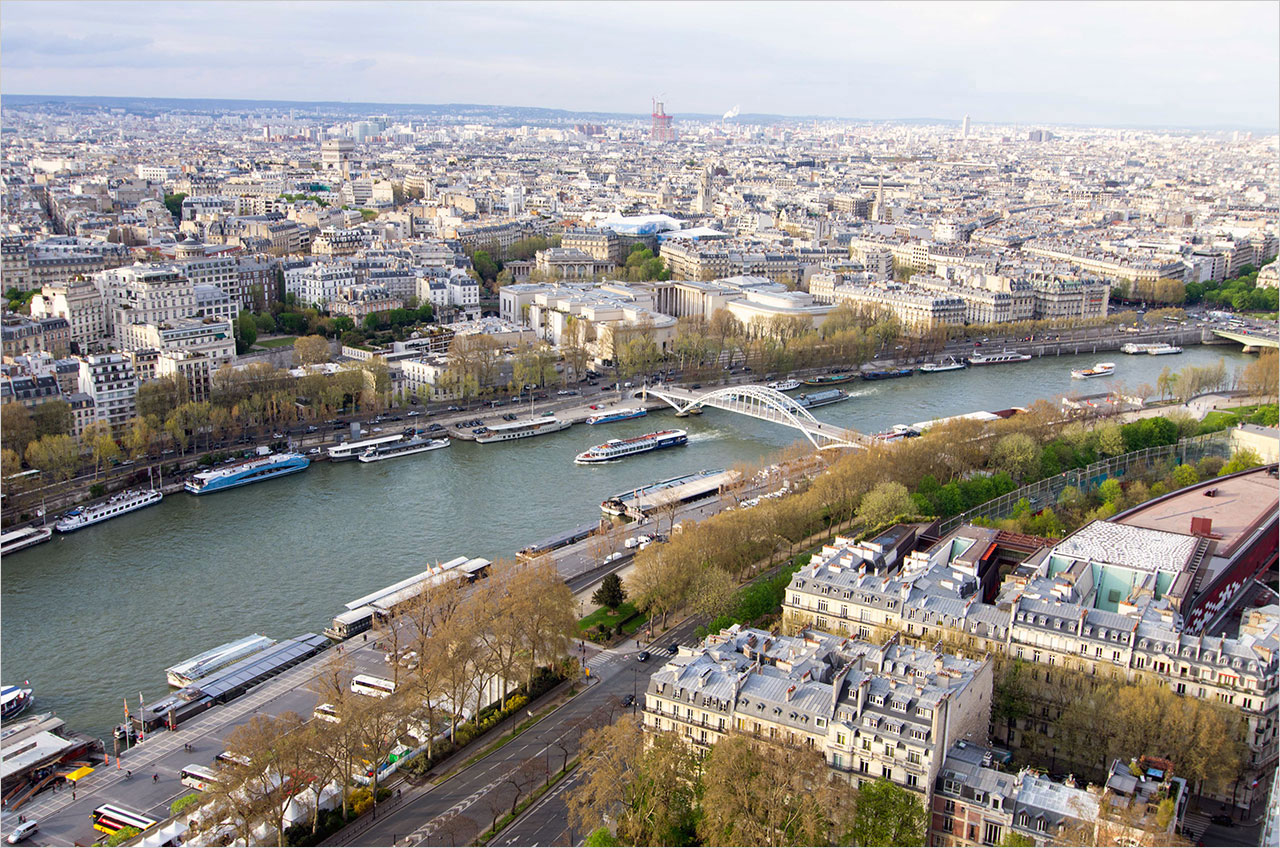 북서쪽으로는 샤요(Chaillot)궁이 트로카데로(Trocadero) 광장을 날개로 감싸듯 펼쳐져 있고, 북쪽으로 센(Seine) 강이 흐르고 있었다. 폭이 비교적 좁은 강 한복판에 유람선이 떠 있었다. 탑을 내려가면 우리는 그 유람선을 타게 될 것이었다.
