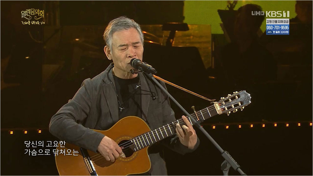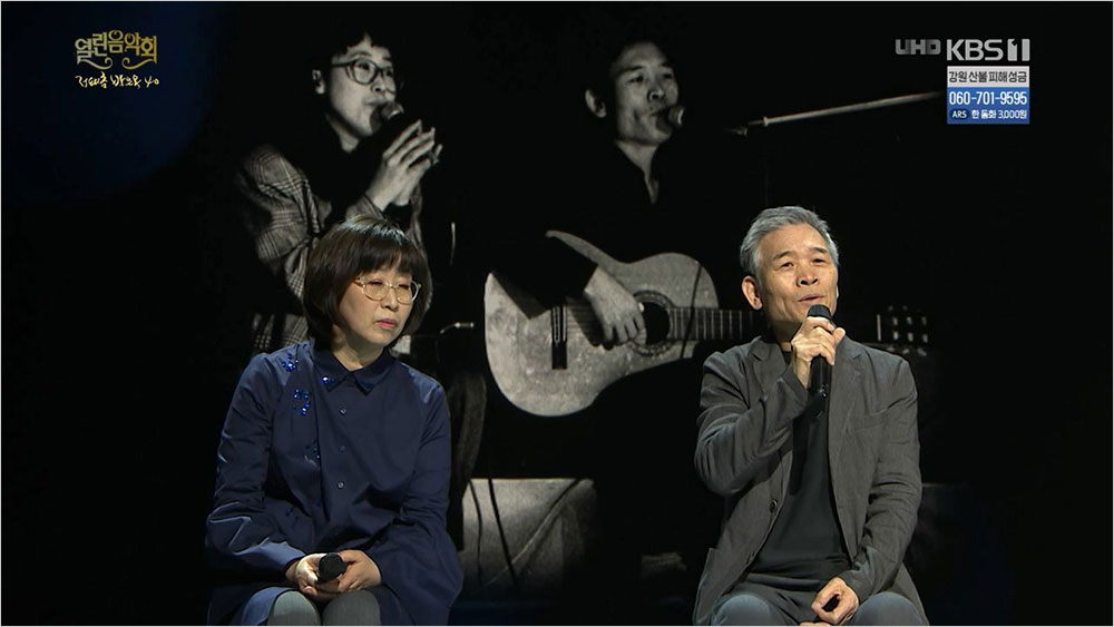 그러나 서울에서 벌어지는 부산한 움직임은 지방 소도시에 사는 이들에게 좀 먼 이야기다. 내가 정태춘을 다시 만난 것은 지난 4월 6일 <한국방송(KBS)> 1텔레비전에서 특별 편성해 방송한 ‘열린음악회’의 정태춘-박은옥 부부 편이었다. 나는 무심코 채널을 돌렸다가 거기 나온 정태춘·박은옥 부부가 함께 노래하는 모습을 발견하고 채널을 고정했다.