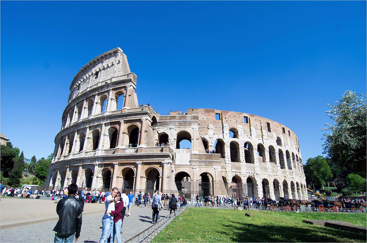 마지막 여정은 팔라티노 언덕 너머 콜로세움(Colosseum)이었다. 로마와 로마 시대를 대표하는 건축물인 콜로세움의 정식 명칭은 플라비우스 원형 경기장이었다. 당시 대부분의 원형 경기장이 도시 외곽 지역에 있었던 것과 달리 콜로세움은 도시 중심부에 있었다. 이 경기장이 네로 황제가 지은 거대한 별장인 황금 궁전의 인공호수를 메운 자리에 세워졌기 때문이다.