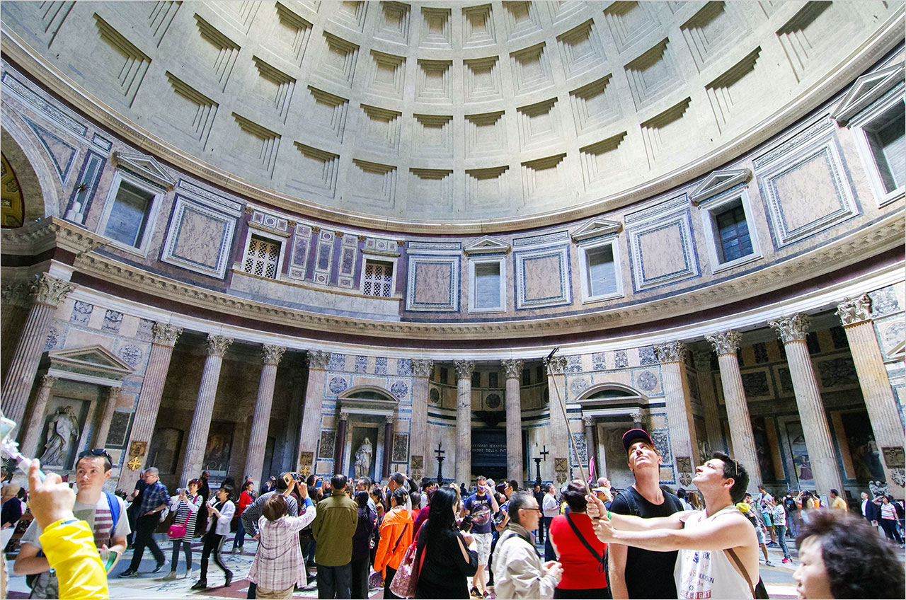 판테온은 그 규모가 사람을 압도한다. 이 거대한 건물이 거의 2천 년 전에 세워졌다는 사실을 가늠하기조차 쉽지 않을 정도다. 2천 년이라는 시간의 무게 앞에 백 년을 살기도 쉽지 않은 인간 존재의 한계는 참으로 덧없는 것이다.