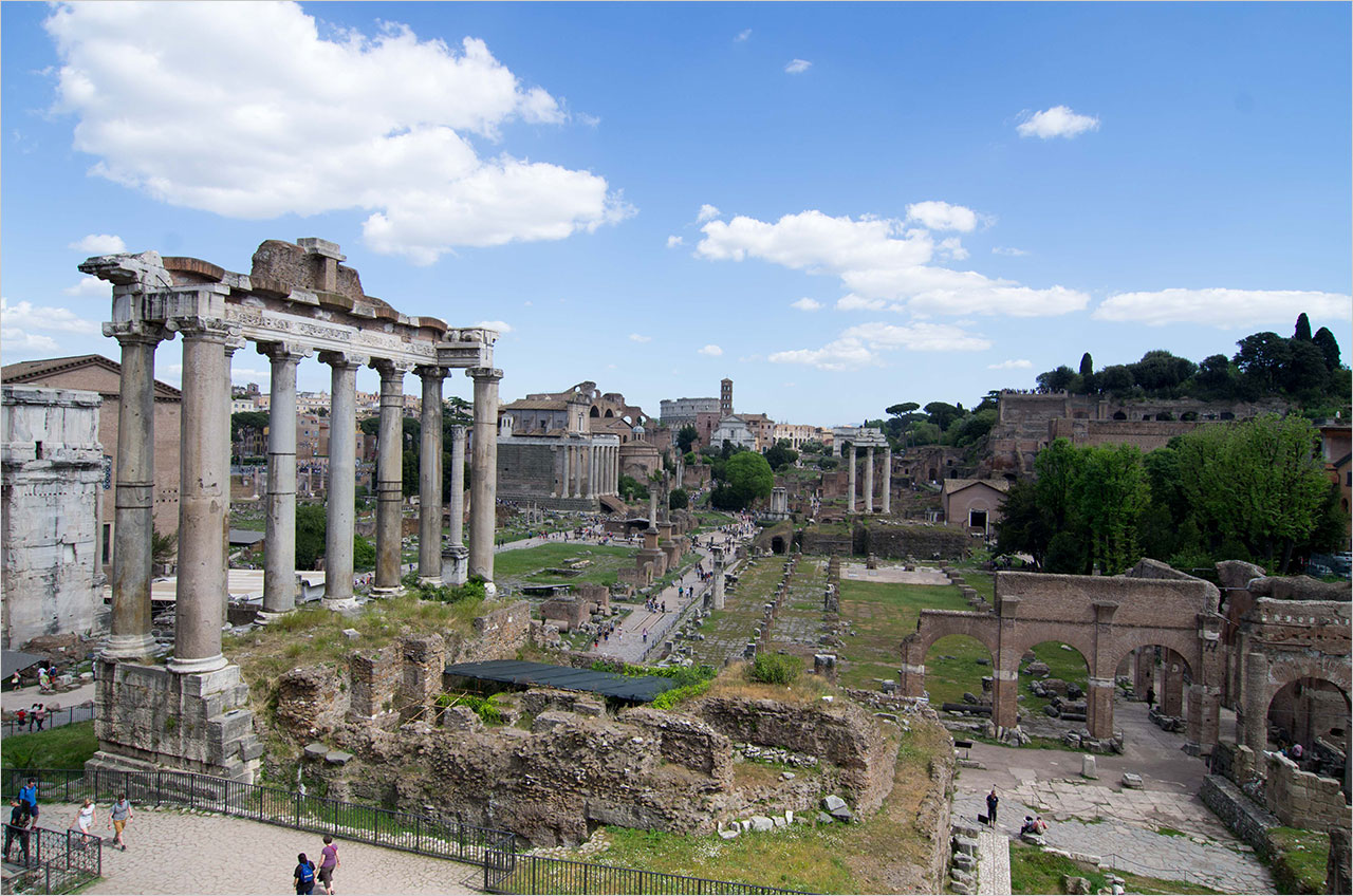 벤츠 승합차가 포로 로마노(Foro Romano, 라틴어-‘포룸 로마눔’ Forum Romanum)가 내려다보이는 카피톨리노(Capitolino) 언덕에 일행을 부려 놓았을 때, 사람들 사이에서는 탄성이 절로 터져 나왔다. 언덕 아래 저지대에는 믿어지지 않는 고대의 흔적이 파노라마처럼 펼쳐져 있었는데, 거기서 문득 내가 떠올린 게 ‘드라마틱 로마사(史)’였다.