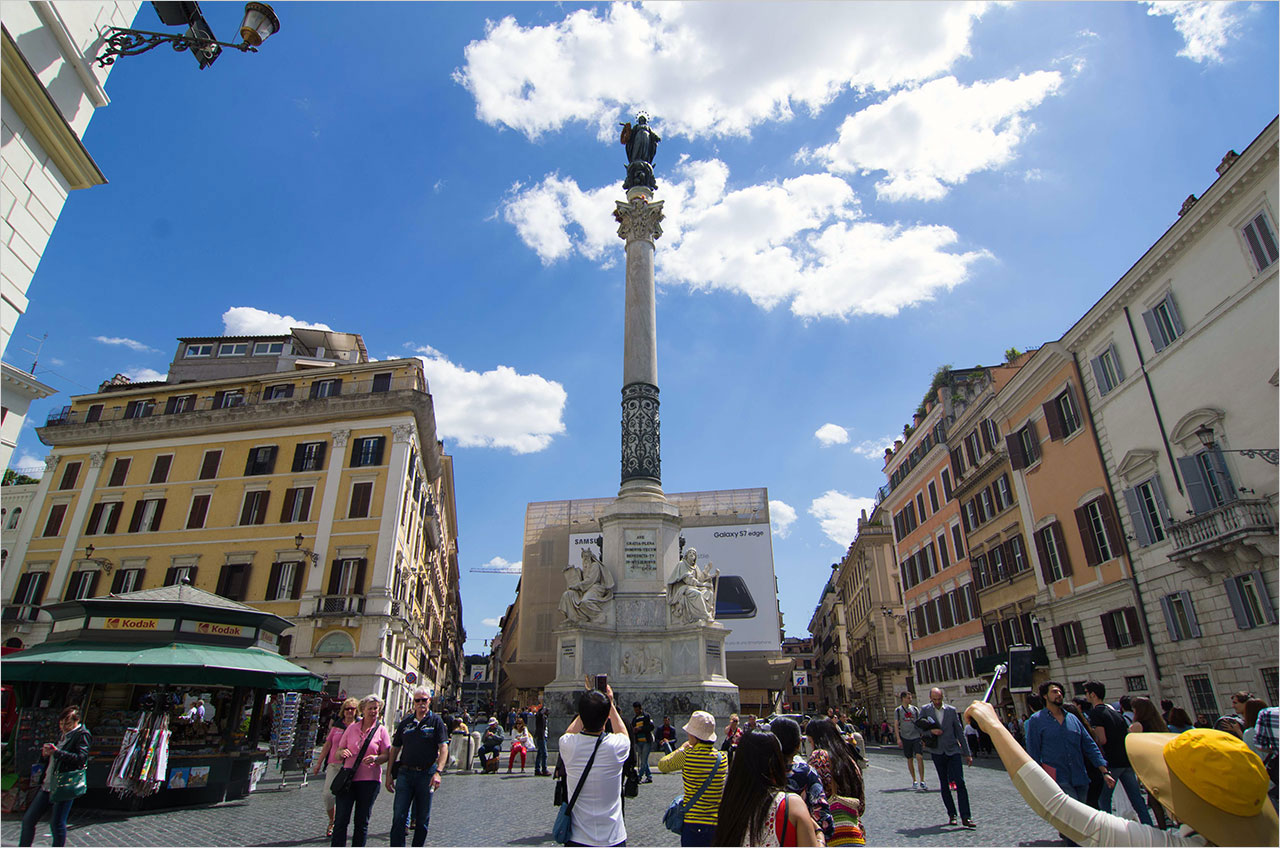 스페인 광장을 거쳐 스페인 계단에 도착했을 때 강렬한 햇볕 때문에 나는 얼마간 지쳐 있었다. 파리에 아닌 ‘스페인’ 광장이라는 이름이 붙은 것은 거기가 17세기부터 바티칸 주재 스페인 대사관 주변에 만들어진 광장이기 때문이다.