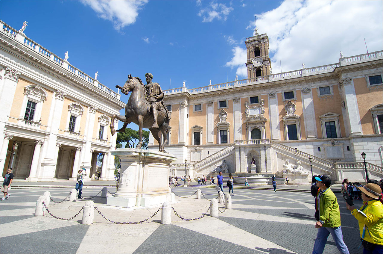 유서야 깊지만 로마에서 가장 작은 이 광장을 설계한 이는 미켈란젤로다. 그는 투시법을 이용해서 좌우 건물을 서로 비스듬히 배치함으로써 광장이 실제보다 더 넓어 보이게 만들었다. 그의 천재적 발상은 캄피돌리노 언덕으로 오르는 계단인 ‘코르도나타(cordonata)’라 불리는 완만한 경사의 계단에서 빛난다.