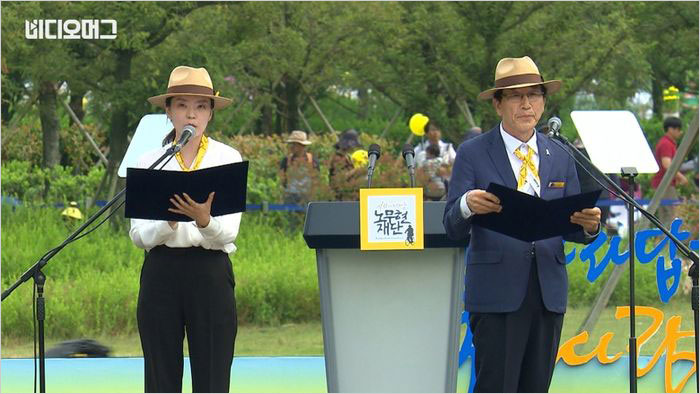 ……우리가 깨어 있겠습니다. 우리가 잊지 않겠습니다. 우리가 지켜드리겠습니다. 대통령님이 멈춘 그 자리에서 그날 우리는 다시 출발했습니다. 더 앞으로 나아갈 것입니다. 당신이 못다 이룬 꿈! 우리가 기필코 이루겠습니다.