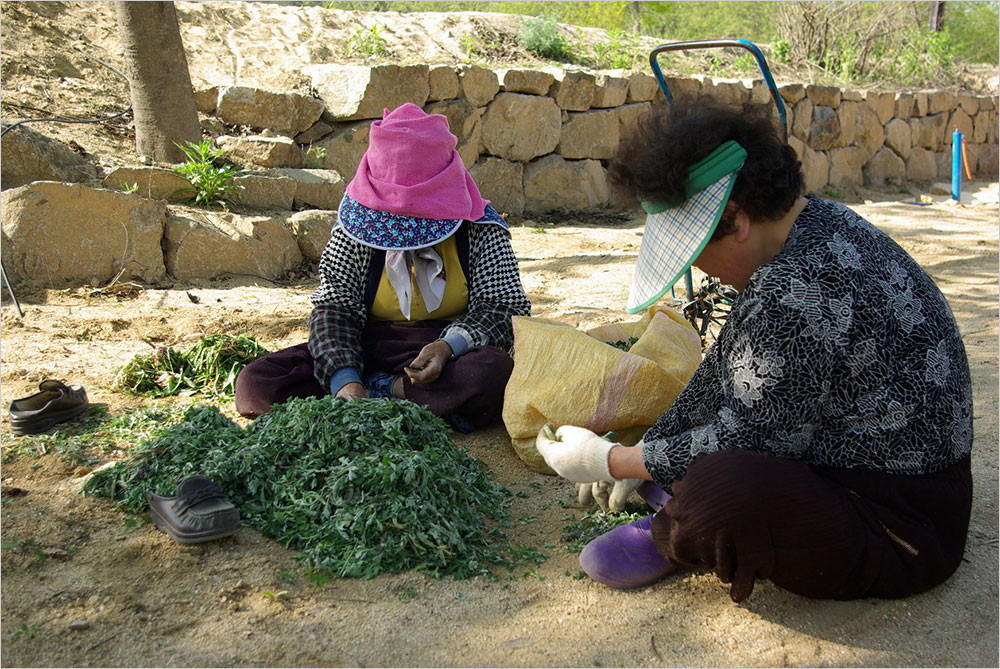 그러나 이태 만에 다시 찾은 무섬마을은 어떤 모습이었나. 나는 자신에게 물어보았다. 낡은 기와를 걷어내고 들보와 도리를 가는 것은, 발전인가 아닌가. 해우당 앞의 나무 그늘에 안노인 둘이 쑥을 다듬고 있었다. 분주하게 손을 놀리면서도 노인들은 도회에서 온 나그네들을 따뜻하게 돌아보았다.