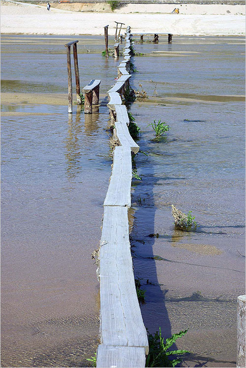 예전에 비기면 수량이 두드러지게 준 강을 가로지른 외나무다리 주변은 철 지난 바닷가처럼 쓸쓸했다. 연인 한 쌍이 오래 다리 위에서 머물렀고, 우리 내외는 그들이 다리를 떠날 때까지 강 저편에서 마을을 오래도록 바라보았다.