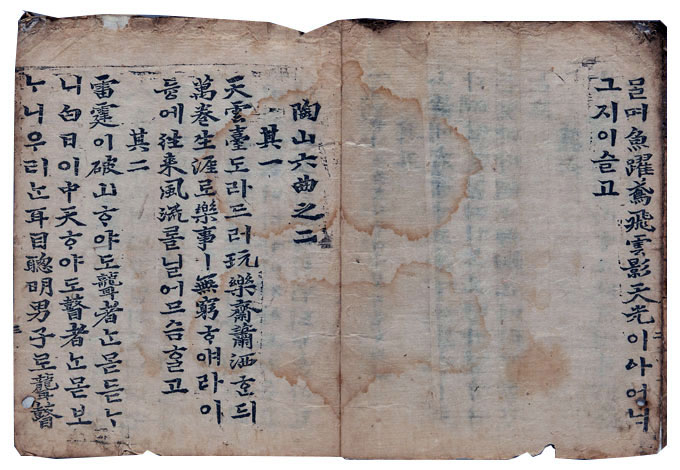 한국·중국·일본 세 나라에서 ‘주자 이래 도학자 가운데 으뜸’으로 꼽히는 대 유학자 퇴계도 한글 시조를 남겼다. 그중 대표적인 노래가 그가 예순다섯 나던 해(1565년)에 지은 <도산십이곡>이다. 국문으로 시조를 썼지만 역시 퇴계다. 그는 “도산십이곡 발(跋)”에서 기존 시가에 대한 불만과 국문 시가에 대한 새로운 인식을 드러낸다.