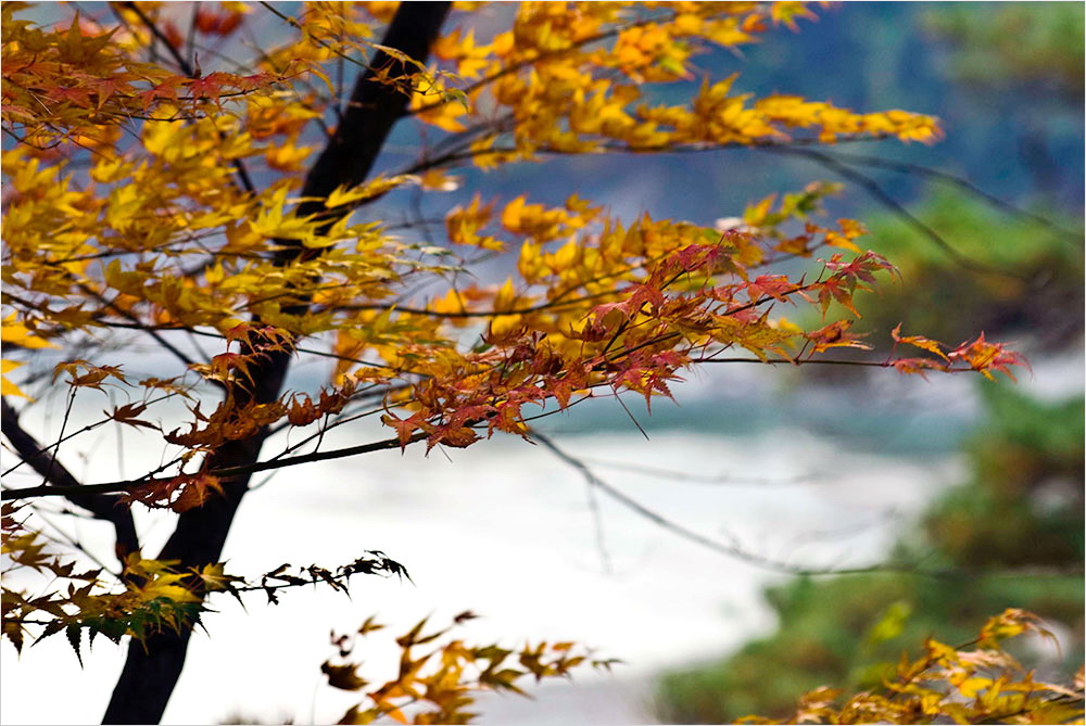 도산서원으로 들어가는 꼬불꼬불한 옛길에는 단풍이 자욱했다. 꼬부라진 길을 돌 때마다 햇빛을 받아 빨간 단풍잎이 화사하게 빛났다. 인근 청량산은 관광버스가 댈 곳을 찾지 못할 지경이라 하나 도산서원은 비교적 한적한 편이었다.