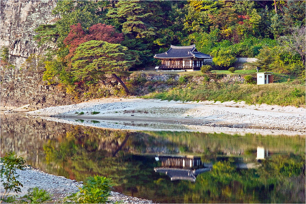 가송협의 암벽 옆에 퇴계의 제자였던 금난수(琴蘭秀, 1530~1604)가 지은 고산정(孤山亭)이 비췻빛 물 위에 그림자를 드리우고 있다. 수량이 잔뜩 줄었지만, 강은 유장하게 흐르고 있었다. 강 따라 저쪽 모롱이를 돌면 퇴계의 선배 문인 농암 이현보의 분강촌이다.