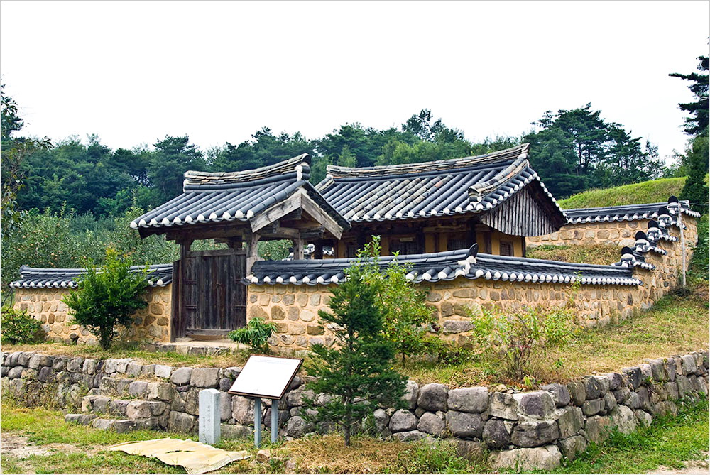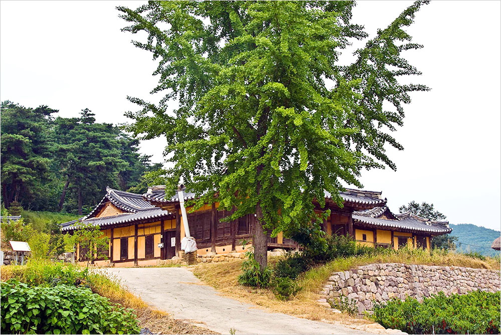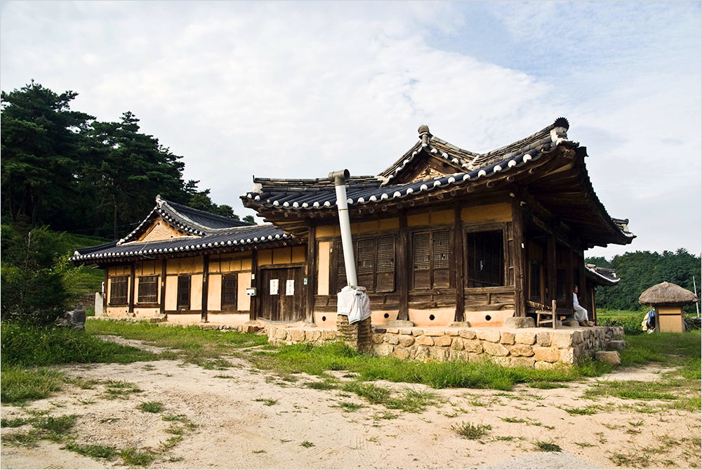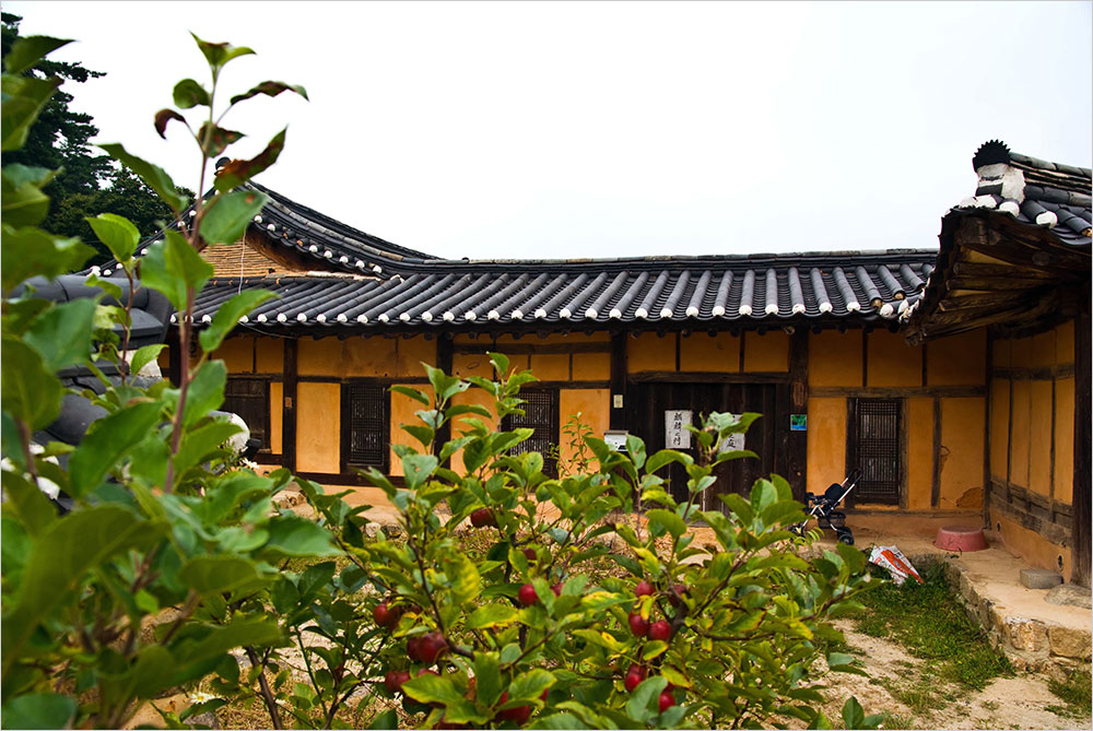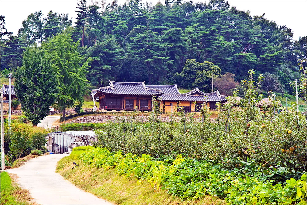 남향한 마을 뒤에는 낮은 산, 마을 앞에는 내[가구천]가 흐른다. 들판에 펼쳐진 마을은 여느 시골 마을처럼 고즈넉하기만 하다. 길가에 서 있는 안내 표지석조차 쓸쓸해 뵌다. 좁은 마을 길 옆으로 사과가 익고 있는 과수원 저쪽에 나지막한 솔숲을 등지고 고택이 서 있다.