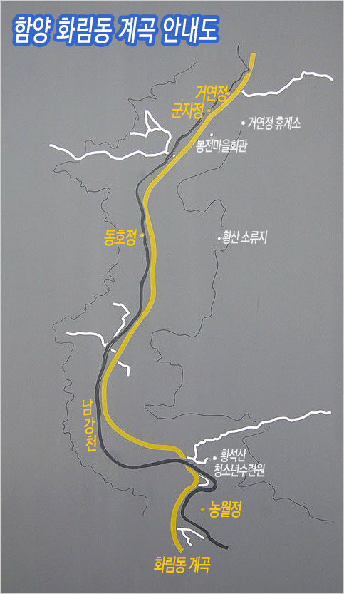 농월정 없는 ‘농월정 국민관광단지’는 개점휴업 중이었다. 텅 빈 주차장과 대부분 문을 닫은 음식점을 뒤로하고 화림동, 이 ‘꽃과 수풀’의 계곡을 떠난다, 담양의 소쇄원(瀟灑園)에 비겼던 화림동의 으뜸, 농월정을 만나지 못하고 이 계곡의 정자 여행은 끝이다.