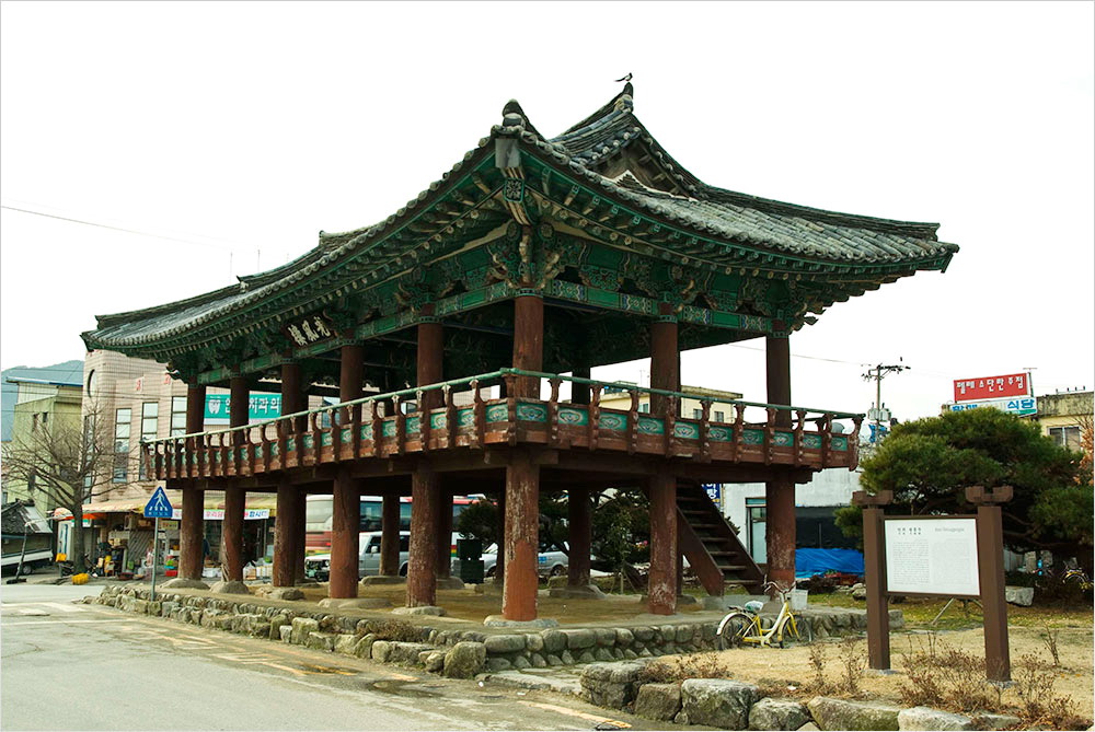 어떤 이는 홍어뿐 아니라 ‘땅에도 삼합(三合)이 있다’ 했겠다. 굽은 ‘소나무’ 그늘에 펼쳐지는 ‘바위’와 담록빛 ‘물결’이 빚어내는 풍경은 바로 그 땅과 하늘과 함께 숨 쉬고자 한 선인들의 소박한 욕망의 공간, 정자가 깃들기 위한 최적의 지세인 것이다.