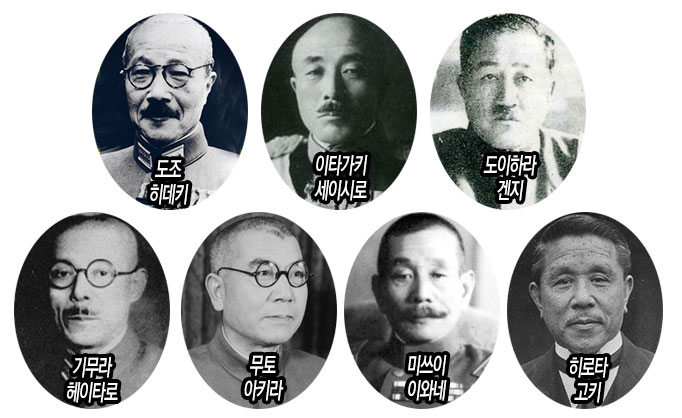 그뿐이 아니다. 사형을 선고받아 처형된 7명과 복역 중 사망한 7명 등 전쟁을 지휘한 지도부 14명은 1978년 후쿠다 내각 때 야스쿠니 신사에 이름이 올려지고 비밀리에 합사되었다. 그런 일련의 반역사적 전개에 일본의 과거에 대한 역사적 성찰이 들어설 여지가 없는 것이다.