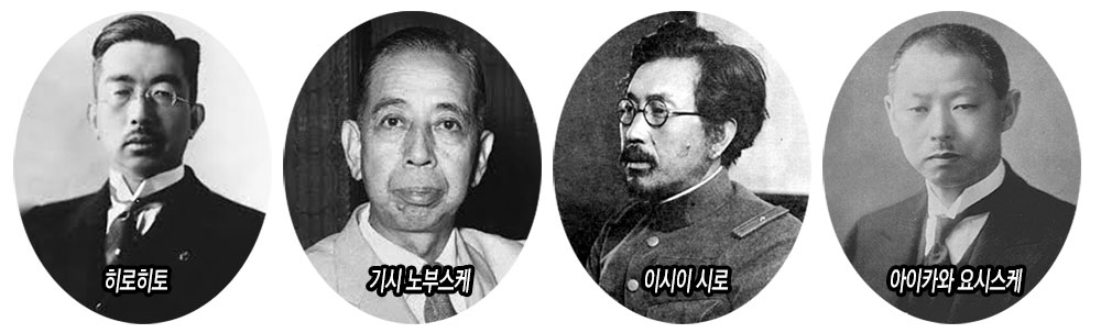 생체 실험 부대인 731부대의 책임자 이시이 시로(石井四郎)와 관계자들 역시 미국에게 연구 자료를 넘겨주는 대가로 아무도 기소되지 않았다. 그 외에 만주국의 실력자 기시 노부스케(岸信介)와 아이카와 요시스케(鮎川義介)도 A급 전범 용의자로 체포됐다가 석방되었다. [관련 글 : 하바롭스크 재판 시작, 그러나 미국은 731부대 전범을 면책했다]