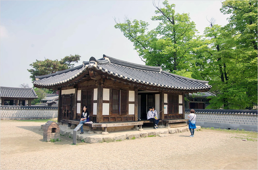 임금의 어진을 모신 경기전 정전과 달리 부속채는 하급관리나 관노, 양민이 수직(守直)하던 곳이다. 자연 건물들의 모양새가 매우 검박하다. 더위에 지친 관람객들은 경덕헌 툇마루에 걸터앉아 땀을 식혀 가곤 했다.
