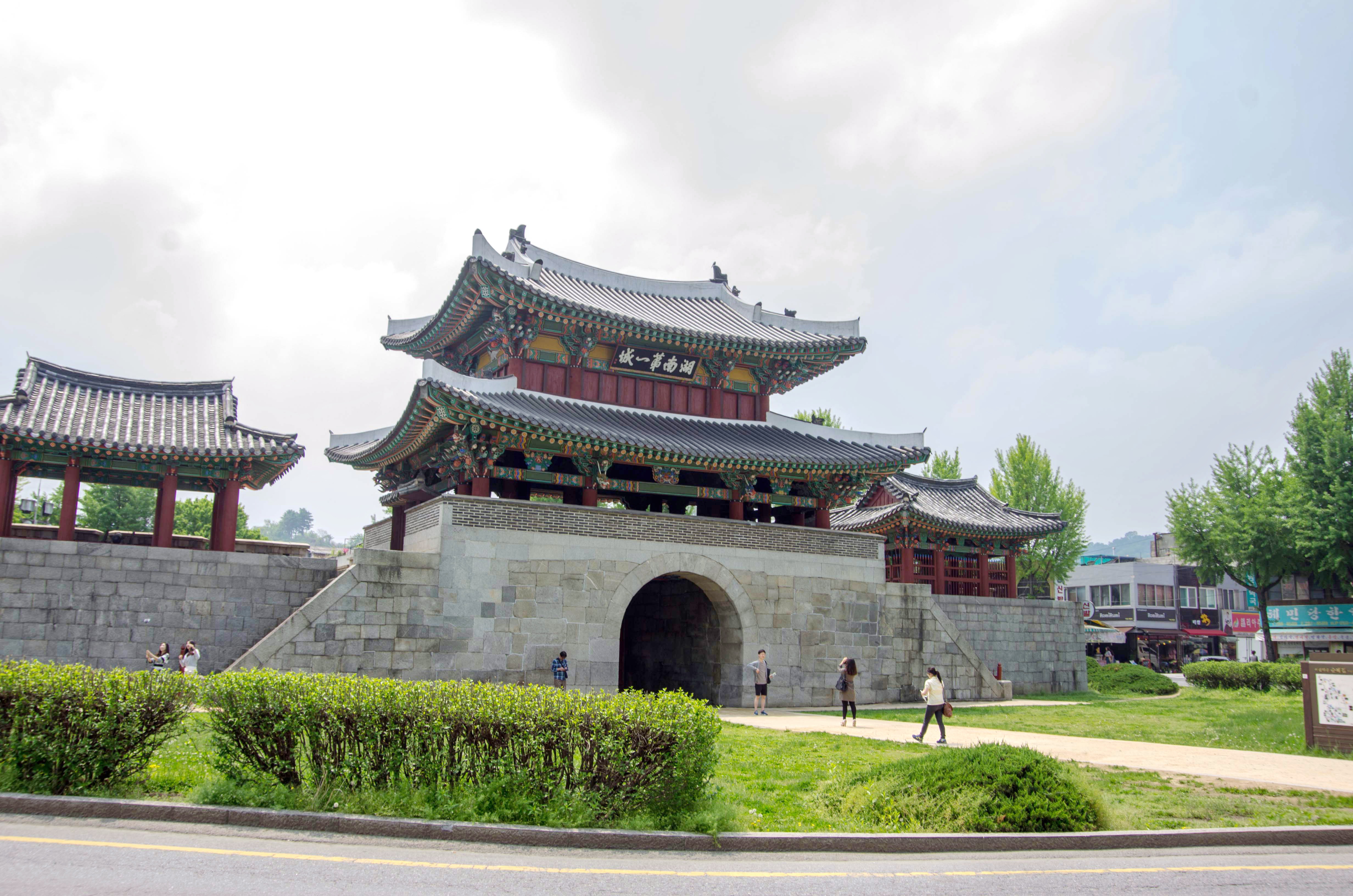 성당을 지나 네거리 저편에 풍남문(豊南門)이 있다. 순종 때인 융희 원년(1907년), 도시계획의 하나로 전주 읍성의 성곽과 성문을 철거했는데 유일하게 남문만 보존한 것이다. 보물 제308호.