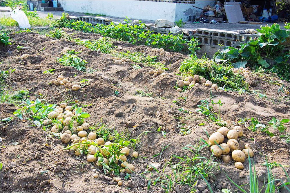 이게 싹이 트기나 할까 하고 못미더워한 밭에, 감자에 나는 미안했다. 그러나 우리 감자밭은 얼치기 농군 내외에게 큰 종이상자와 작은 종이상자 하나씩의 수확물을 안겨주었다. 그것은 '심은 대로 거두게 하는' 자연의, 흙의 정직한 선물이다.