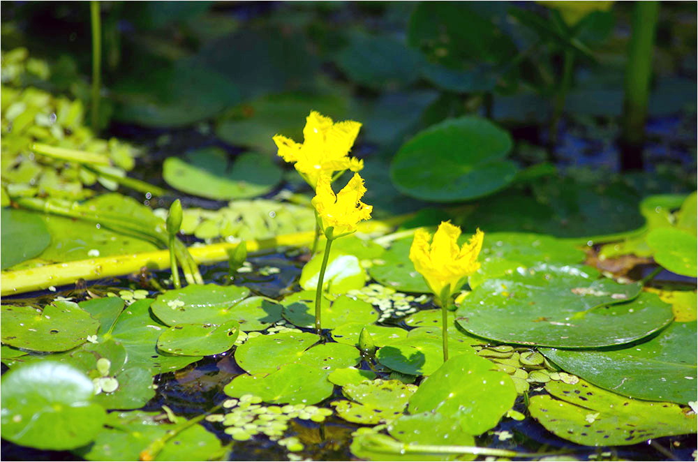 백련도 없고, 2000년대 초반에 피었다는 가시연꽃도 없다. 오직 아스라하게 펼쳐지는 연못을 뒤덮은 것은 홍련의 물결, 넘실대는 커다란 잎사귀의 바다다. 가장자리 한쪽에 언제 심은 것인지, 아직 어린 노랑어리연꽃 군락이 눈에 띄었을 뿐이었다.
