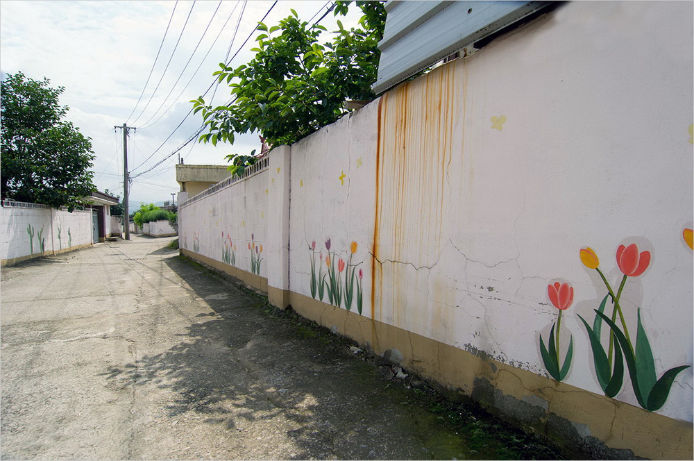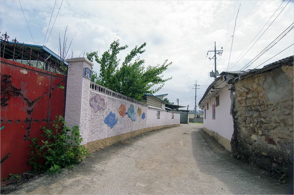 내비게이션은 이내 나를 남계2리 어귀에 데려다주었다. 두만천(川)을 경계로 면사무소가 있는 복성리와 붙어 있는 남계2리는 해방 후에 생긴 동네라 하여 해방촌이라고도 부른다. 이 마을 골목길에 담장 벽화가 조성된 것은 2010년과 2011년에 시행된 사업의 결과다.
