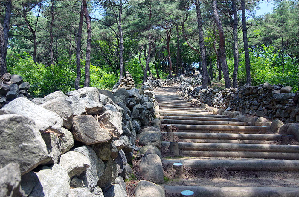 경천대 주차장에 닿았을 때는 11시가 성큼 지나 있었다. 20년 전과 달리 경천대는 꼼짝없는 관광지로 바뀌어 있었다. 널찍한 주차장과 편의시설에서부터 단지의 시설물들은 전형적인 관광지의 모습 그대로였다. 전망대로 오르는 길 나무 계단과 길섶의 돌담도 어디서 본 듯한 느낌으로 다가오는 건 그래서다.