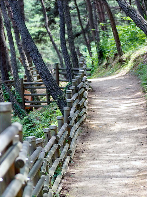 무우정을 지나 나무다리를 건너면 2001년 MBC가 방영한 드라마 <상도(商道)> 촬영 세트장이 있다. 촬영장이라 하지만 생각보다 규모가 작고 단출하다. 다시 입구로 돌아 나올 때, 길가 비탈에서 다람쥐 한 마리를 만났다. 요즘 다람쥐는 사람도 두려워하지 않는가. 계속 셔터를 눌러대는데도 녀석은 오불관언이었다.