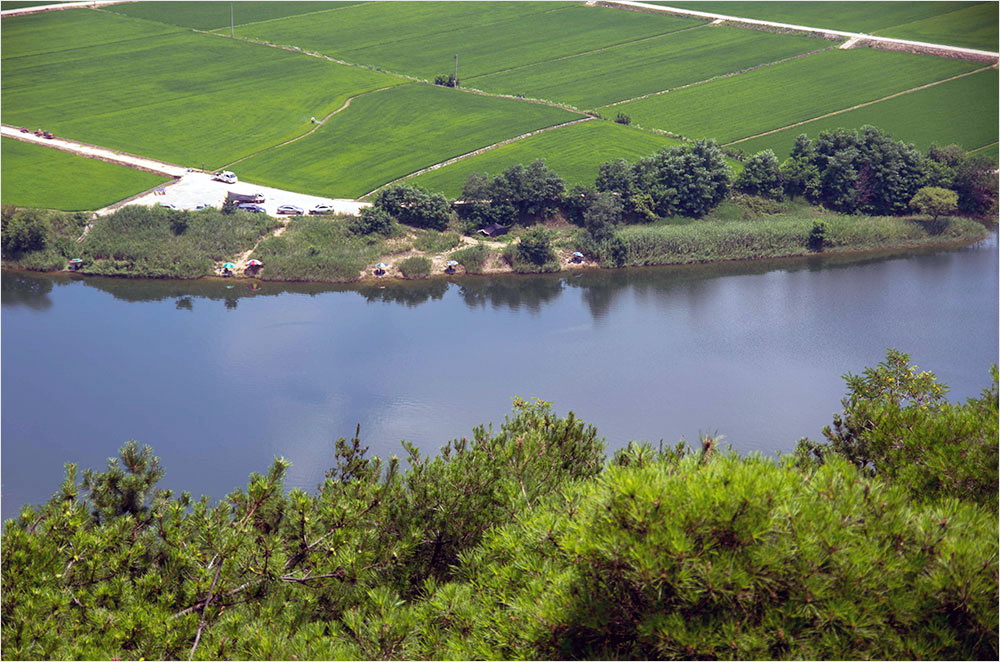 깊어진 수심 때문에 강가는 땅과 물의 경계가 명확해 보인다. 강변 너머는 벼가 파랗게 자라고 있는 논이 펼쳐지고, 강가에 낚시꾼 몇이 낚시를 드리우고 있었다. 사람들은 무심히 강을 내려다보고 기념사진을 찍고 있었지만, 강이 잃어버린 모래톱을 따로 기억하지는 못할 것이었다.