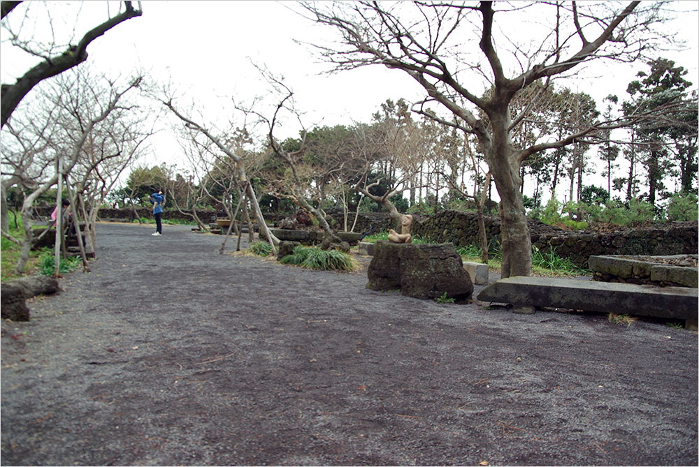 잘 포장된 도로를 따라 달리고 있는 삼나무 숲과 동백꽃의 행렬, 나지막한 돌담으로 둘러싼 밭과 거기 싱싱하게 자라고 있는 양배추나 마늘, 쪽파 등의 농작물과 함께 나른하게 봄이 익어가고 있었다. 밭 한가운데나 ‘오름’ 주변에 자리 잡은 ‘산담’이라 불리는 무덤이 정겨웠고, 이제 드문드문 꽃을 피우고 있는 유채꽃이 슬프도록 화사했다.