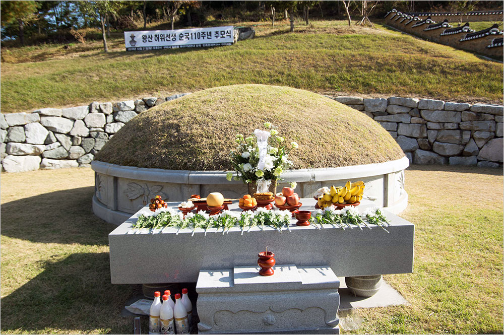 왕산허위선생기념관이 임은동 산자락에 세워진 것은 2009년이다. 산 아래 생가터는 직계 후손이 기증한 600평에다 시에서 기념공원을 조성했다. 기념관을 열면서 김천의 묘소도 이장했다. 묘소 옆에 사당도 세워졌다. 그러나 역시 그게 다였다. 그의 순국에 대한 추모 행사는 한 번도 이루어지지 않았다는 말이다.