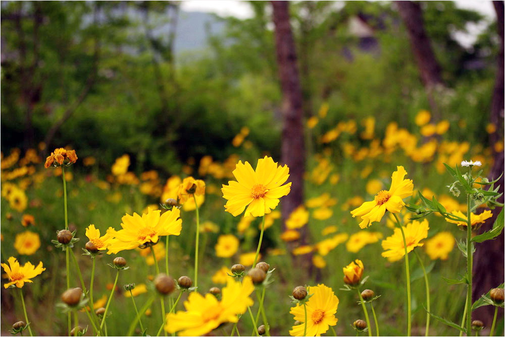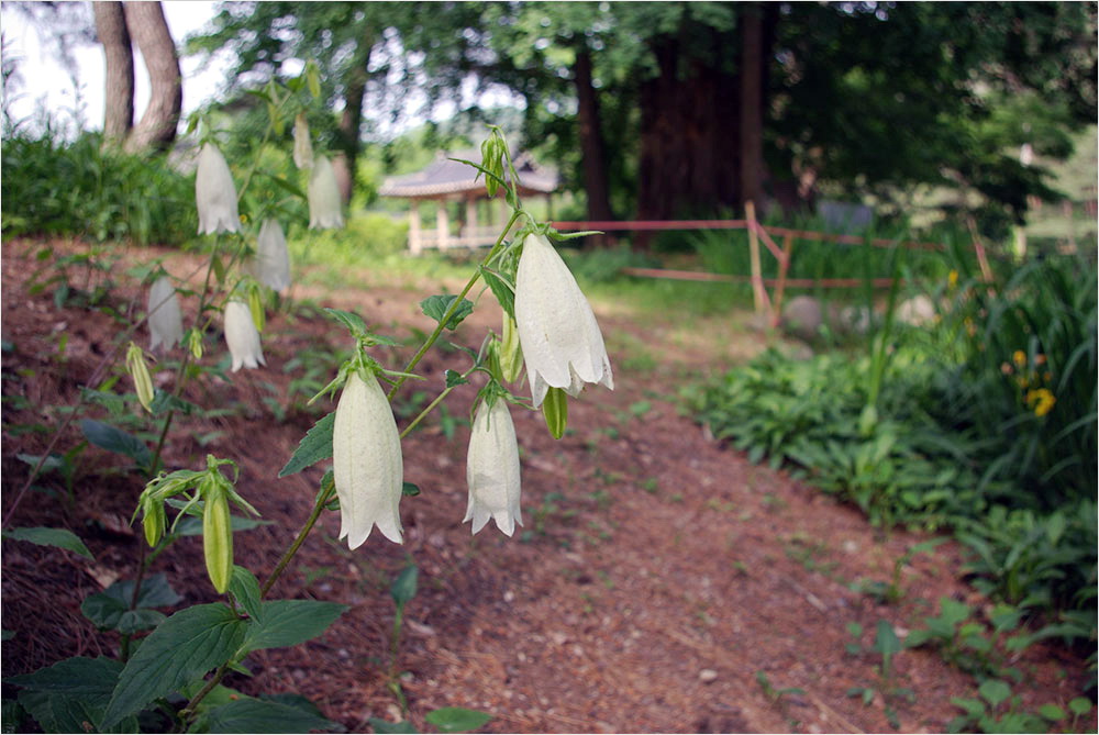 징검다리는 이름만 징검다리지, 바위라 해도 될, 만만찮은 크기의 자연석을 네모나게 다듬은 것이다. 정축지변에 흘린 이 고을 사람들의 피로 씻어낸 시내, 죽계천은 세월과 역사 너머로 무심히 흘러간다. 징검다리를 건너 우리는 다시 서원 입구로 돌아왔다. 소나무숲에 핀 섬초롱꽃 너머로 경렴정이 아련히 멀어 보였다.