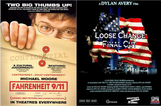 ‘9·11테러’와 관련한 음모론을 다룬 마이클 무어 감독의 <화씨 911(Fahrenheit 9/11)>(2004)이나 딜런 에이버리의 <루스 체인지(Loose Change)>(2006) 같은 영화도 마찬가지다. 이들은 비판과 풍자의 대상이 된 권력으로부터 보이지 않는 탄압을 받을지언정 그들이 누리는 표현의 자유는 존중되고 어떤 사법적 단죄의 대상도 되지 않는다.