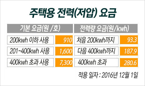 지난해 12월 개정된 가정용 전력의 누진 요금제는 기존 6단계에서 3단계로 축소되었다. 우리 집 월 사용량은 150Kw 미만이니 누진 요금제 첫 번째 구간의 요금을 적용받는다. 현재 상태로도 우리 집에서는 월간 50Kw까지는 첫 번째 구간 요금으로 쓸 수 있다.