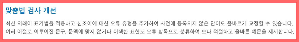 ‘한글 2018’에서는 ‘맞춤법 검사 기능’을 아래와 같이 ‘개선’했다고 밝히고 있다.
