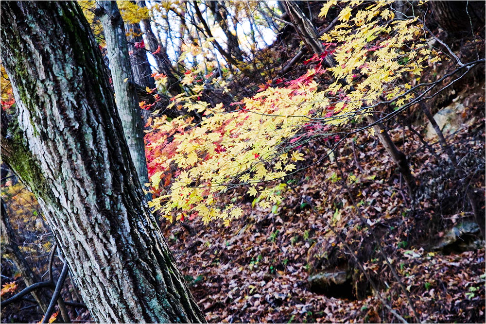 만덕전 아래 냇가에는 때늦은 진달래가 망울지고 있었다. 거꾸로 되짚어 오는 언덕길에 단풍이 고왔다. 붉고 누르고 푸른 단풍 빛과 산사를 오르내리는 사람들이 입은 원색의 등산복 빛깔이 어우러지는 주말의 산사는 굳이 단풍이 아니라도 좋았다.