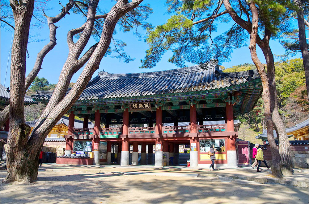 일주문으로 들어오는, 짧지 않은 진입로부터 숲길이고, 일주문·대양문·금강문·사천왕문에 이르는 비탈길도 늙은 소나무와 단풍나무들이 에워싸고 있다. 대웅전과 마주하고 있는 만세루 주변도 운치 있게 굽은 노송들이 이 천년 사찰의 품격을 증언하고 있고, 대웅전 뒤편은 더 볼 것 없이 황악산 솔숲이다.