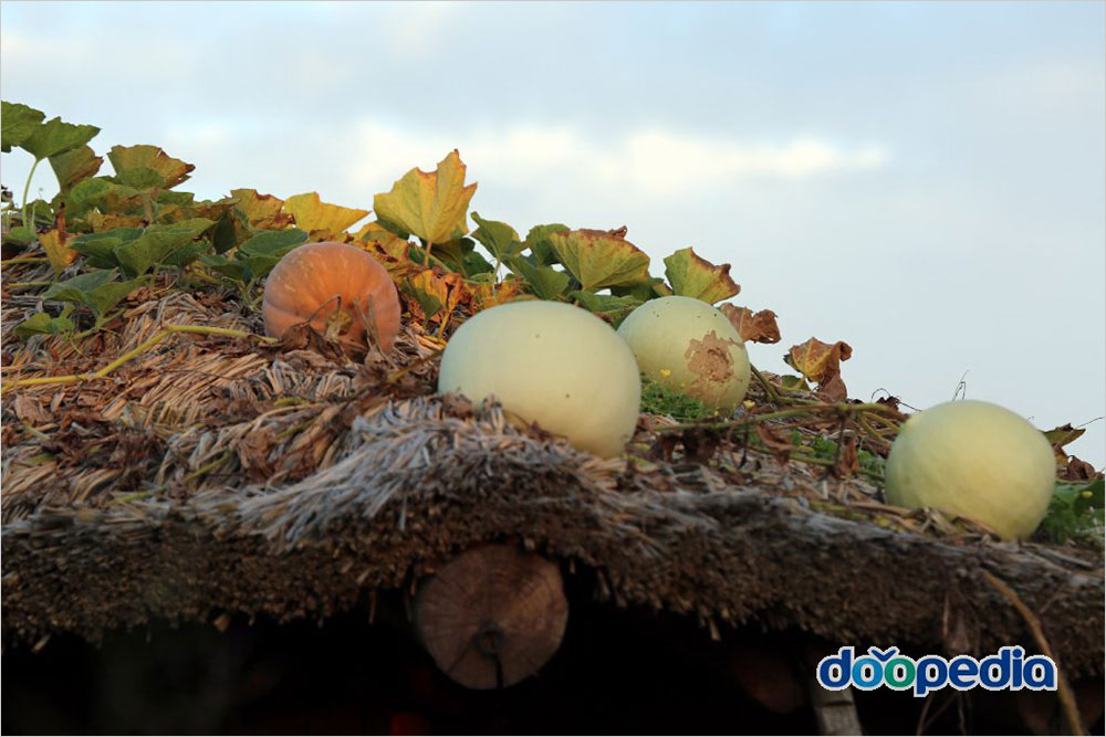 수요가 사라지면서 자연스레 박의 재배도 줄었는데, 여기엔 새마을운동과 함께 들어온 슬레이트 지붕이 한몫했다. 벋어가던 덩굴에다 하얗게 익어가는 초가지붕 위의 박은 잊힌 시골 풍경의 원형이 아니었던가. 이제 초가지붕 위에 누운 박을 보려면 초가가 보존되고 있는 민속 마을 따위를 찾아야 하는 시대가 되었다.