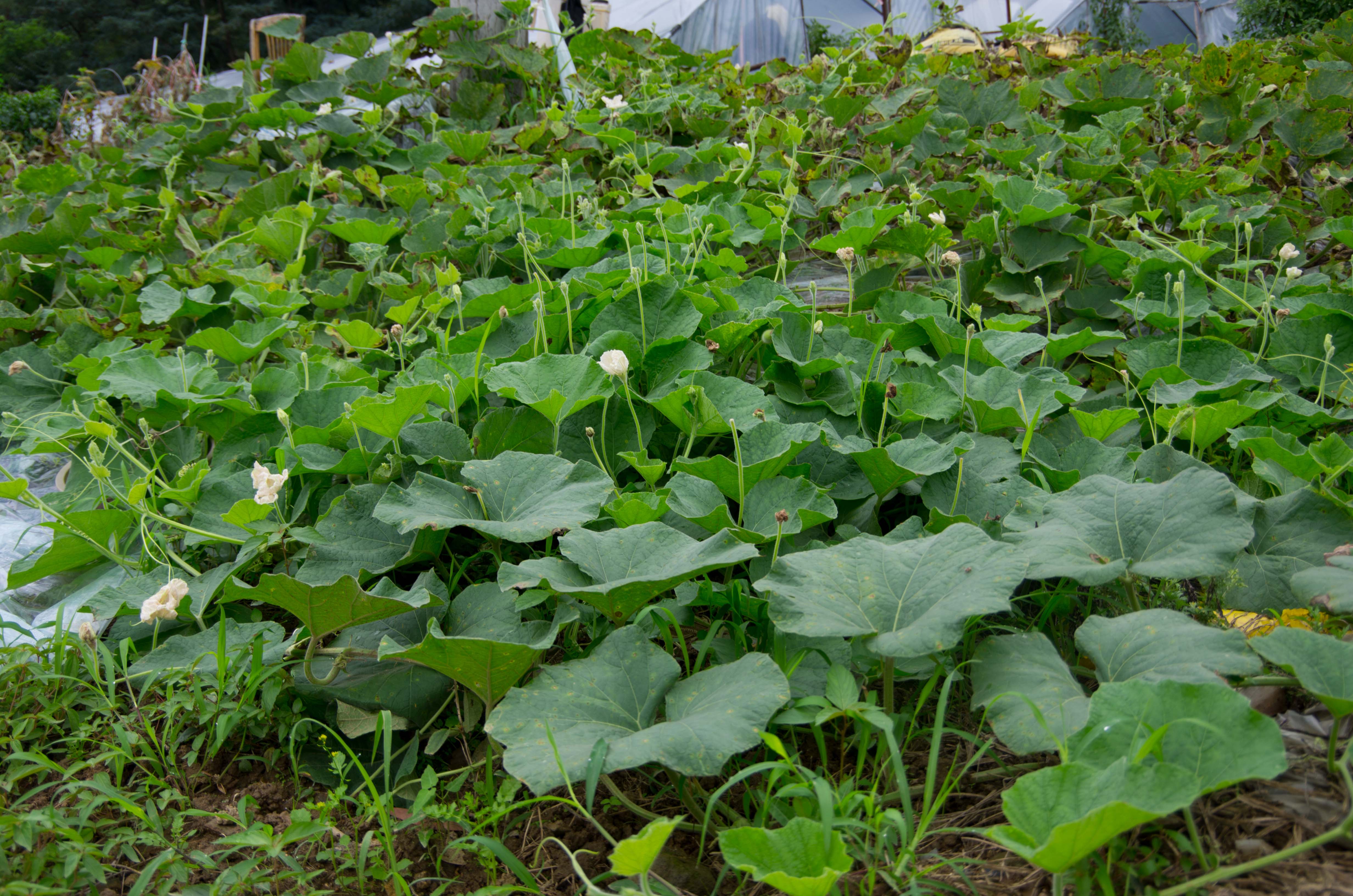 농로와 붙은 밭의 비탈면에는 박을 심었다. 적지 않게 따냈는데도 아직 열매를 맺기 시작한 놈부터 제법 굵어진 놈까지 박은 군데군데 열려 있다. 아내가 가끔 내어놓는 박나물도 여기서 자란 놈이다. 호박이든 박이든 이런 자투리땅에 심어서 거두는 작물인 것이다.