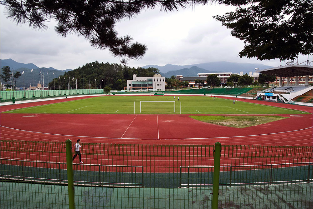 서둘러 전시회 구경을 마치고 나오자, 체육관 왼편에 잔디가 깔린 운동장이 파랗게 펼쳐져 있었다. 연두색 펜스와 소나무 너머로 산뜻하게 펼쳐진 운동장의 모습은 산뜻했다. 나는 한 번 더 영월, 정말 괜찮네 하고 중얼거렸다. 좋네요. 축구를 즐기는 아들애도 고개를 끄덕였다. 운동장 트랙을 돌고 있는 중년 남자에게 나는 큰 소리로 물었다.