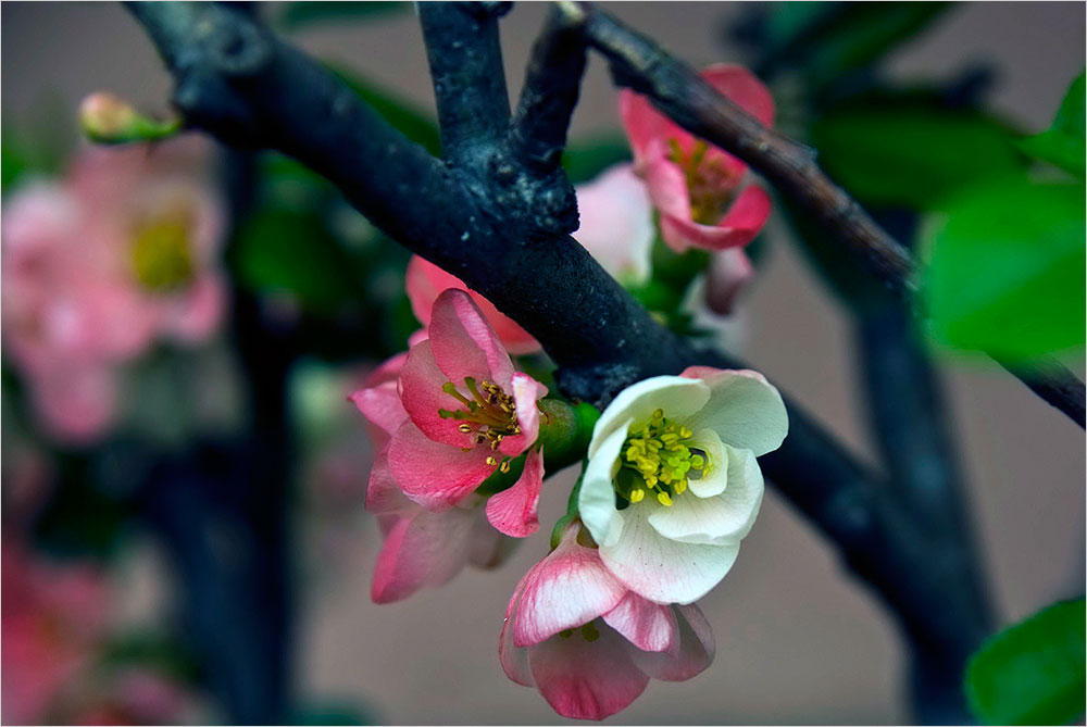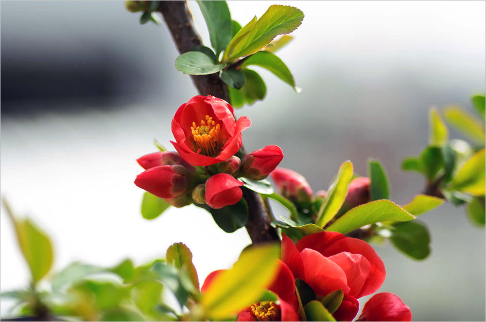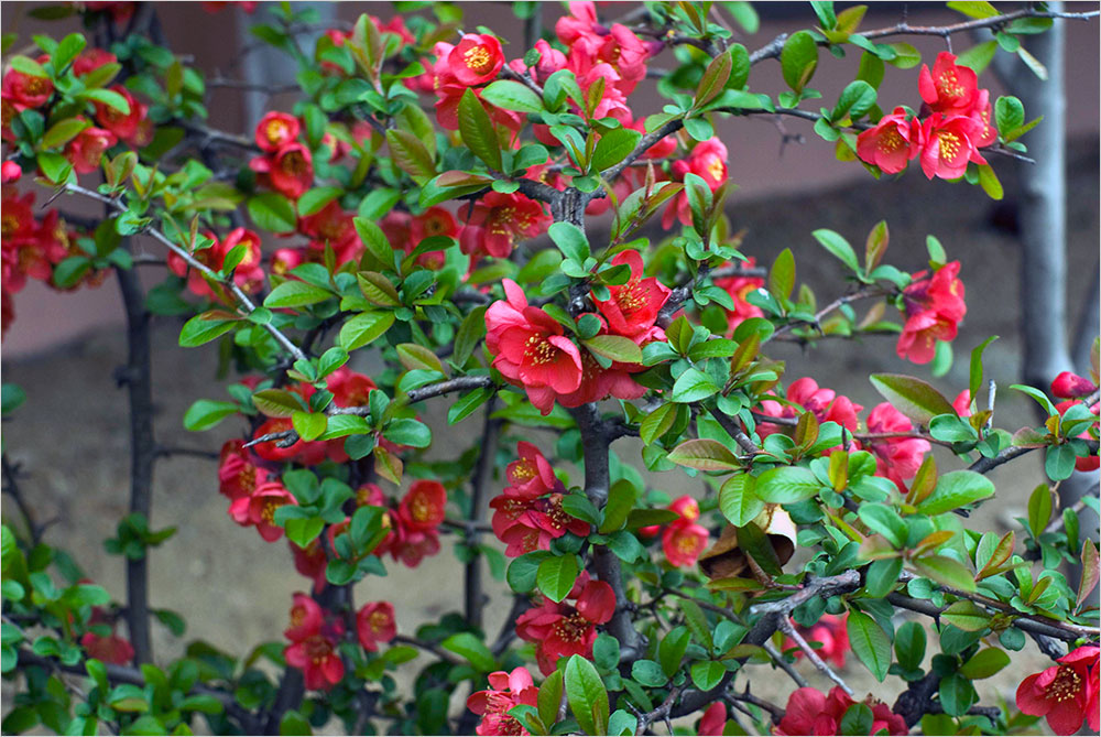 명자나무를 처음 만난 건 2007년, 안동에 살 때다. 내가 사는 아파트 엉성한 뜰에 키 작은 관목 한 그루가 유난히 눈에 띄었다. 빨갛게 부풀어 오른 꽃봉오릴 눈여겨 두었는데, 어느새 꽃을 피웠다. 무심코 지나다니다 그 자색(姿色)이 여느 꽃과 다르다는 걸 알았다.