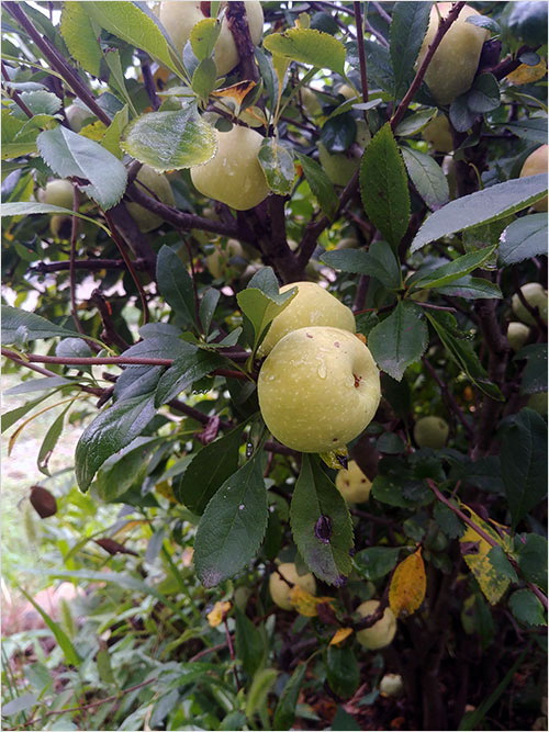 어저께는 의성 사는 벗에게 들렀다가 온갖 꽃들이 다투어 피어 있는 그의 화단에서 낯선 열매를 만났다. 마치 사과 같기도, 배 같기도 한 주먹만 한 열매가 보기에 좋았다. 아내는 모과인가 머리를 갸웃했다. 벗에게 물었더니 명자 아닌가, 한다. 맞다, 거긴 지난봄에 산당화가 탐스럽게 피어 있었던 데다.