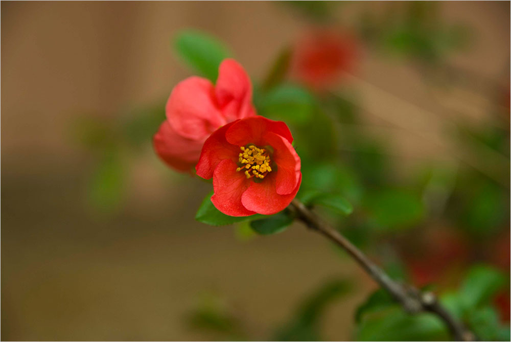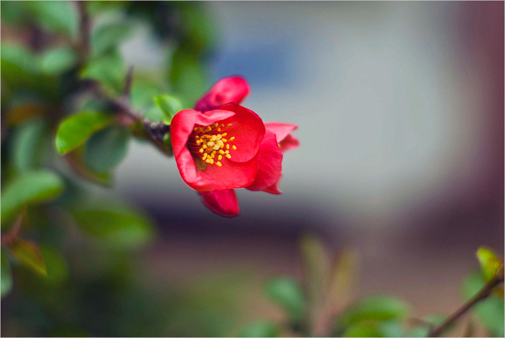 그러다 거기 꽃이 핀 걸 확인한 게 한 열흘쯤 전이었다. 인터넷을 검색해서 명자나무를 확인하고 나니 웬걸, 아파트 반대편 뜰 주위로 심어진 녀석들 여러 그루가 눈에 들어왔다. 날이 갈수록 가지에 총총 피어나는 꽃송이가 탐스러웠고 나날이 짙어지는 붉은빛 꽃잎과 노란 꽃술이 곱디고왔다.