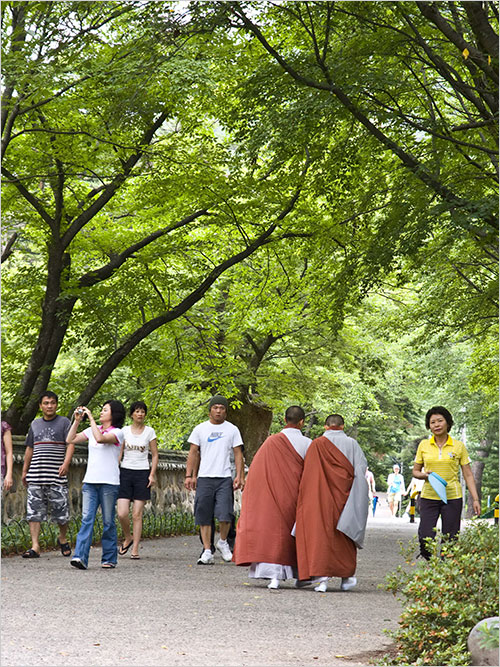 외인의 출입을 금한 회성당 옆을 지나는, 밀짚모자를 쓴 키 작은 학인과 주차장으로 내려가는 긴 담장 길을 나란히 걷고 있는 두 비구니의 무심한 뒷모습에서 읽히는 것은 수행자의 삶에서 풍기는 여유다.