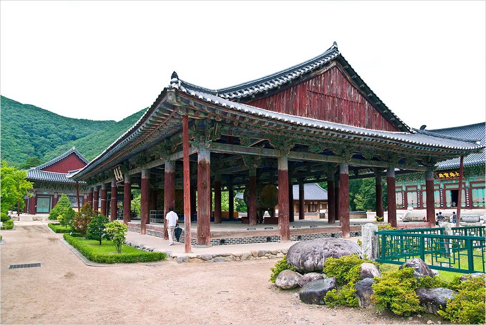 한때 종각으로 쓰이기도 했던 건물의 널찍한 우물마루엔 법고가 덩그렇게 매달려 있다. 단지 크기만 할 뿐 그에 걸맞은 건축적 의미는 별로라고 하지만 그만그만한 전각을 주변에 거느리고 의연히 서 있어 그 중심을 잡고 있어 전체적으로 막힌 숨통을 틔우는 느낌이 없잖아 있다.