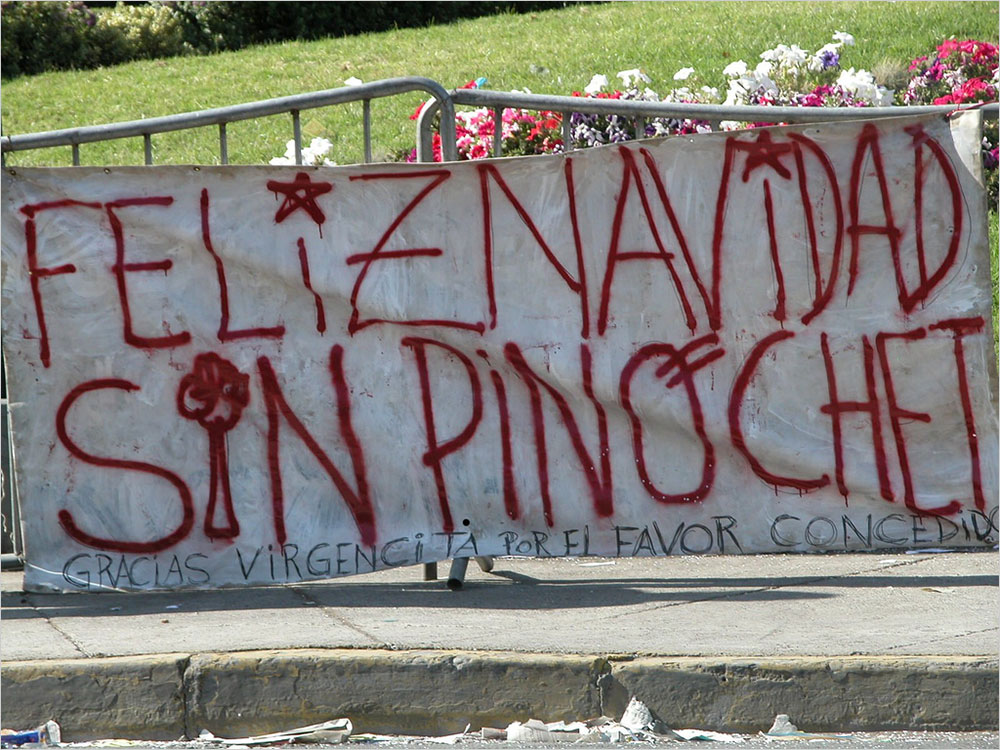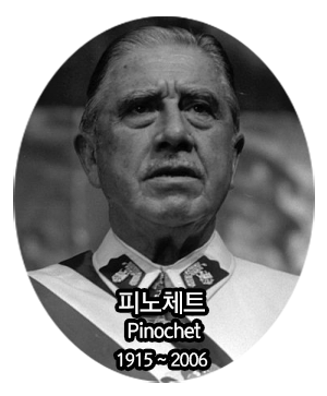 피노체트(1915~2006)는 1990년까지 대통령으로 재임하면서 권위주의적, 강압적 신자유주의에 근거한 광범위한 경제개혁을 시행했다. 그의 재임 기간 중 좌파 정당, 군사독재에 반대하는 민주화 운동 인사 3천여 명이 학살되었고 1천여 명은 실종되었다.