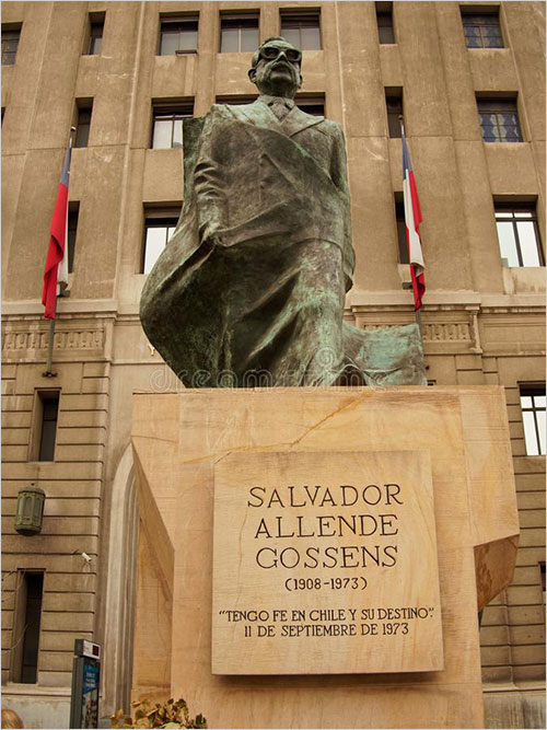 아옌데는 피델 카스트로가 선물한 AK-47 소총을 들고 쿠데타군에게 최후까지 저항하다 자살했다. 소아과 의사 출신의, 라틴 아메리카에서 최초로 민주 선거를 통해 집권한 사회주의 정당(칠레사회당)의 대통령 아옌데는 굶주림에 허덕이던 민중, 특히 영양실조로 고통받던 어린이들의 사회복지정책 실현을 위해 진력했다.